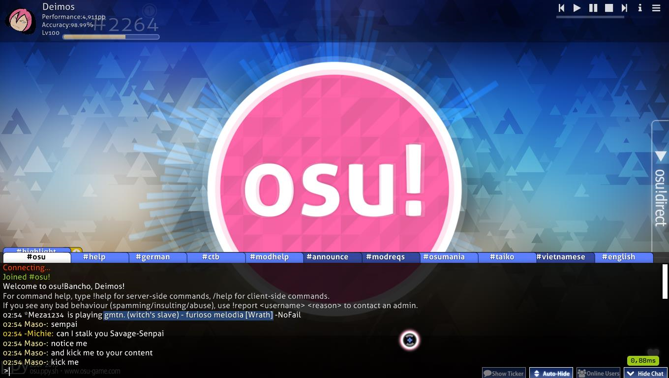 For any issues join the Discord. Is a 2D musicrhythm game where player must tap circles slide balls and spin spinners following the rhythm of the song. YOUR KEYBINDS DEFAULT TO DFJK AND IF U FREEZE JUST REFRESH.